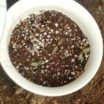 朝日のため写真が白飛びしていて見づらいですが、苗の根本の方にもつぼみがついています。